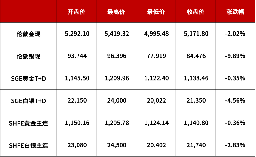 上周,现货黄金开盘在5292.10美元/盎司,最高触及5419.32美元/盎司。周五现货黄金收盘报5171.80元/盎司,周跌幅-2.02%。上周现货白银开盘在93.744美元/盎司,最高触及96.396美元/盎司,周五收盘84.476美元/盎司,周跌幅-9.89%。上周,受美伊开展的影响,市场避险情绪高涨,国际金价一度上行至5420美元附近。但随着原油价格持续大涨,金融市场流动性紧缩情形加剧,美指大幅上涨,贵金属市场受到流动性挤压,国际金价一度跌破5000美元/盎司,白银价格一度跌破78美元/盎司。周五公布的美国2月非农就业人数录得-9.2万人,大幅低于预期及前值,失业率录得4.4%,高于4.3%的前值及预期,美联储6月降息预期上升至50%,对贵金属市场起到一定的支撑作用,国际金价周线收于5150美元/盎司上方,国际银价收于85美元/盎司左右。