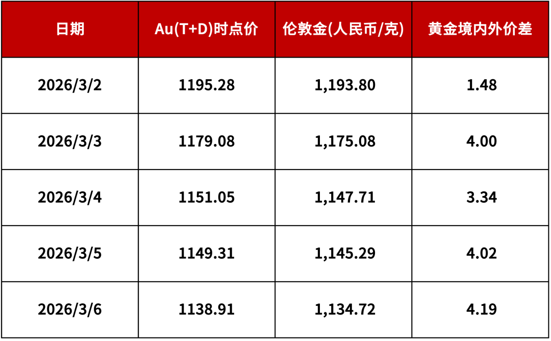 黄金境内外价差情况