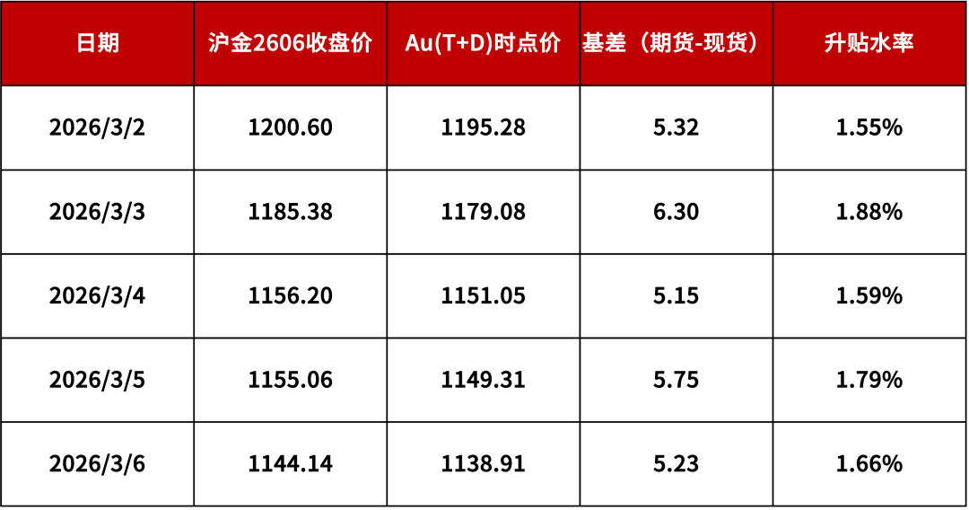 沪金主力合约与现货升贴水情况