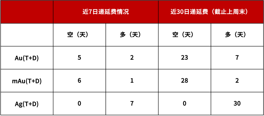 上周黄金延期均为空头占优,白银延期为多头占优,低利率低库存情况下,建议投资者关注多空力量转换,适当布局多头相关头寸。