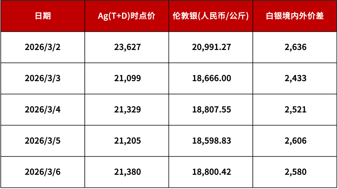 白银境内外价差情况